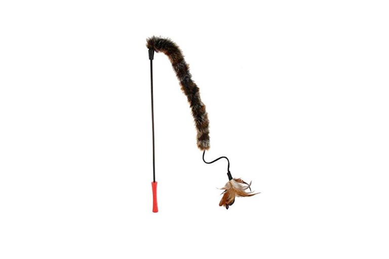 7014-Catwand Feather Teaser w/natural feather plush tail & tpr handle