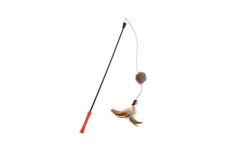 7072-Catwand Feather Teaser w/ Natural Feather, Plush Tail & TPR Handle (Red)