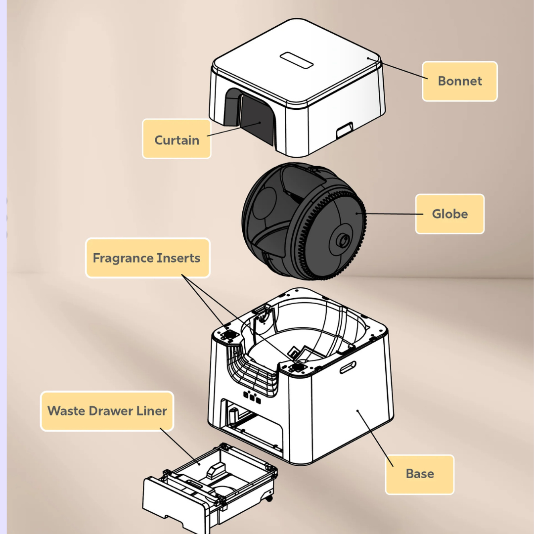 Replace fragrance inserts monthly and waste drawer liner weekly for single-cat households