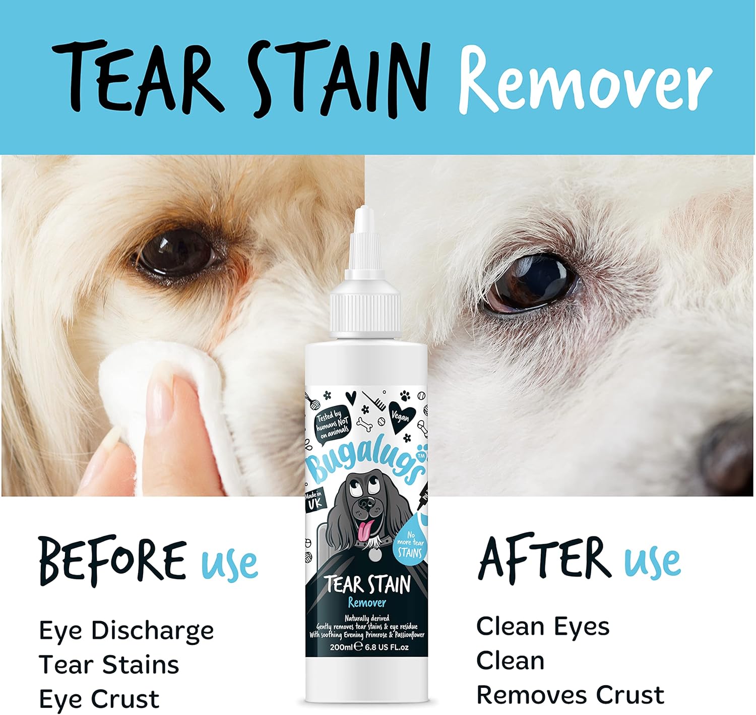 Bugalugs Tear Stain Remover for Dogs & Cats – Natural 200ML Eye Cleaner