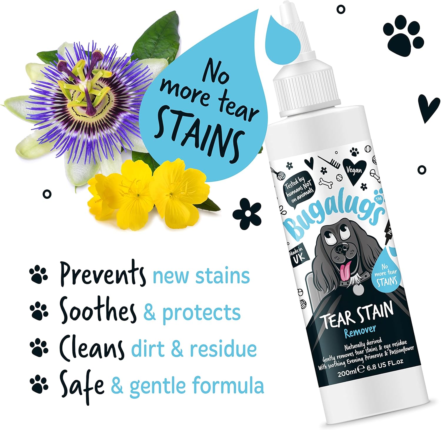 Bugalugs Tear Stain Remover is free from harsh chemicals and safe for daily use. It’s the perfect solution to keep your furry friend looking their best.