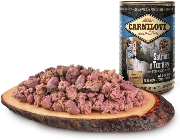 Carnilove Salmon & Turkey Wet Food is crafted for adult dogs who thrive on a natural, protein-rich diet. This 400g can contains 67% wild-origin salmon and turkey, offering essential amino acids that support muscle maintenance and overall vitality.