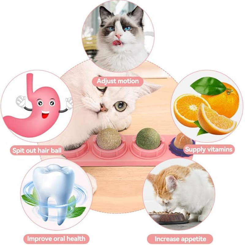 - 【Improve Oral Health】 Catnip roller ball wall are made of cats’ favorite treats, so cats will play and chew on their own without your intervention. Cat nip ball licker will help clean teeth, reduce cat’s dental plaque, fresh breath and improve oral hygiene.