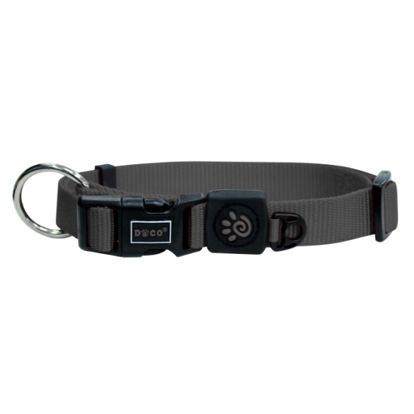 DOCO Signature O-Ring Collar is constructed with HIGH quality nylon and plastic fittings. The unique placement of the fully welded O-Ring allows for easy attachment for a leash. The design ensures a breakaway system that catches the buckle and allows you to re-fasten the collar before your dog is freed from the collar. ID ring for attaching your pets identification. Feel safe and secure with the collar.