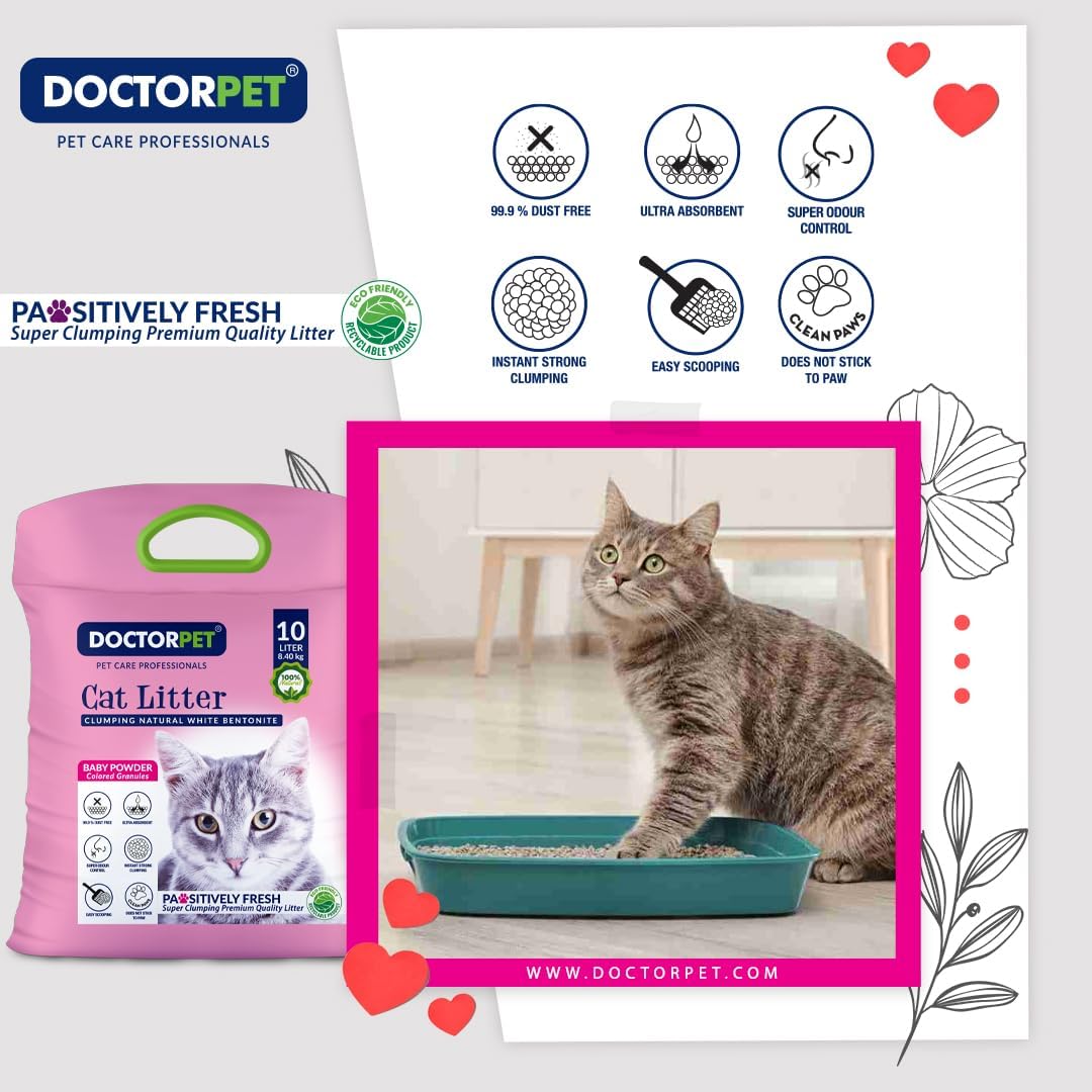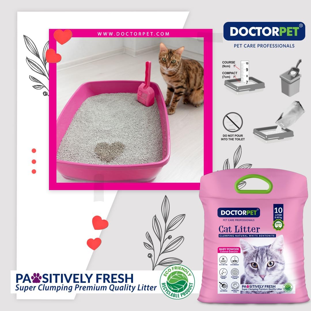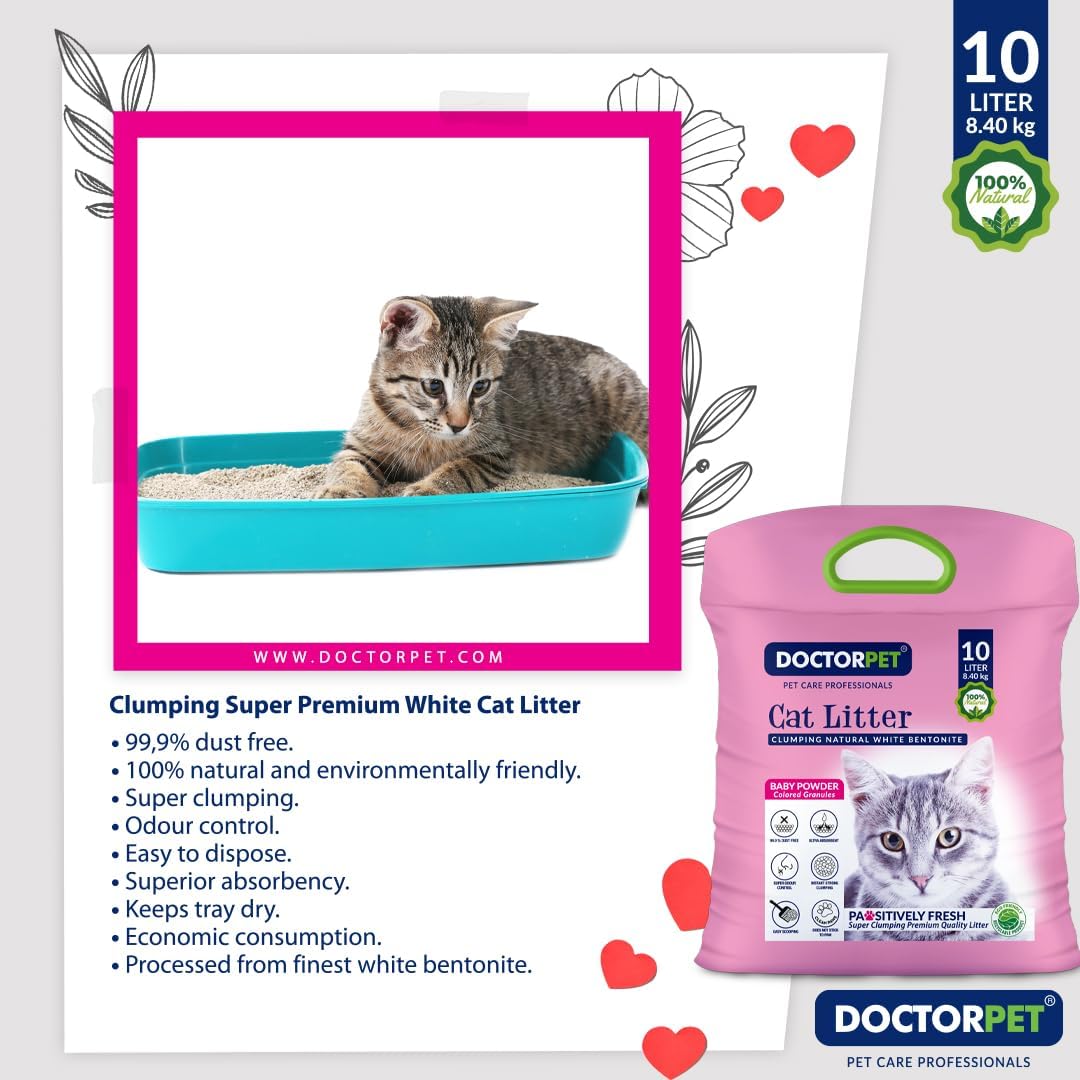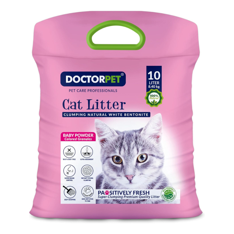 Keep your cat’s litter box fresh and clean with Doctor Pet Baby Powder Cat Litter 10L, made from 100% natural clumping bentonite. Designed for superior absorbency and easy maintenance, this premium cat litter combines powerful odor control with a pleasant baby powder scent to keep your home smelling fresh.