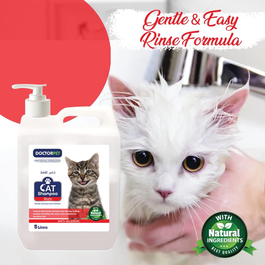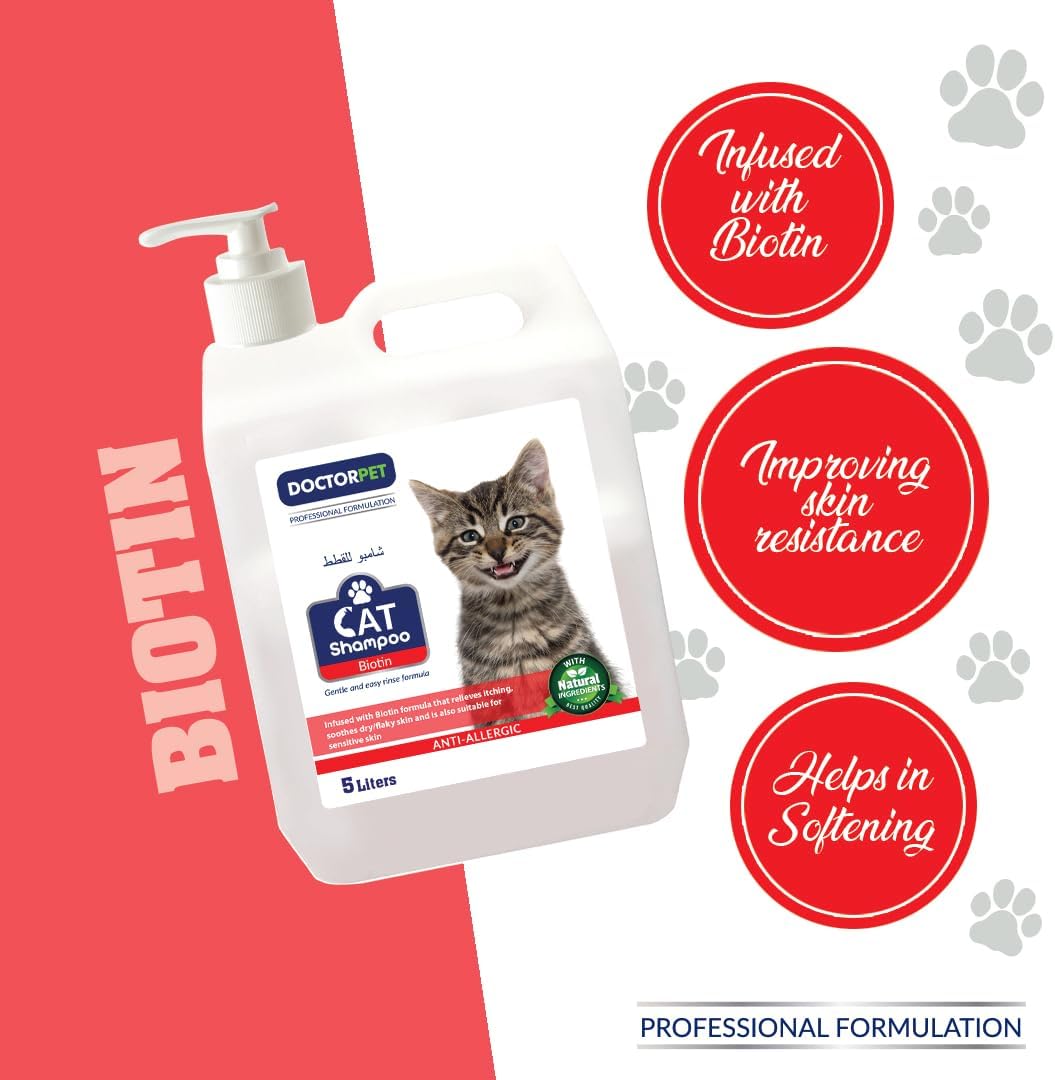 Maintain your cat’s coat in top condition with Doctor Pet Biotin Cat Shampoo, specially formulated to nourish and protect feline fur and skin. This 5-liter shampoo is enriched with biotin, essential vitamins, and natural moisturizers to strengthen hair follicles, reduce breakage, and promote a soft, shiny coat.