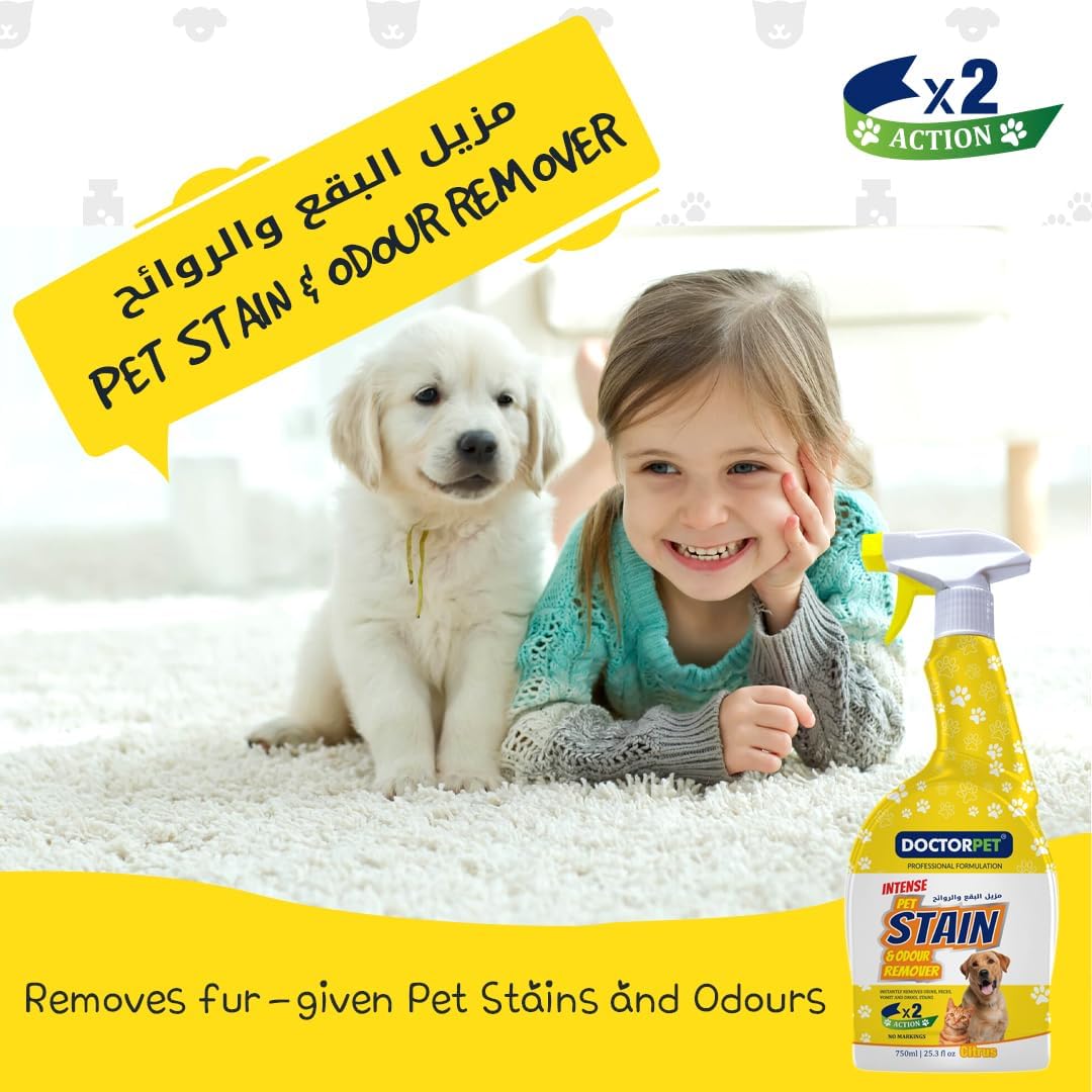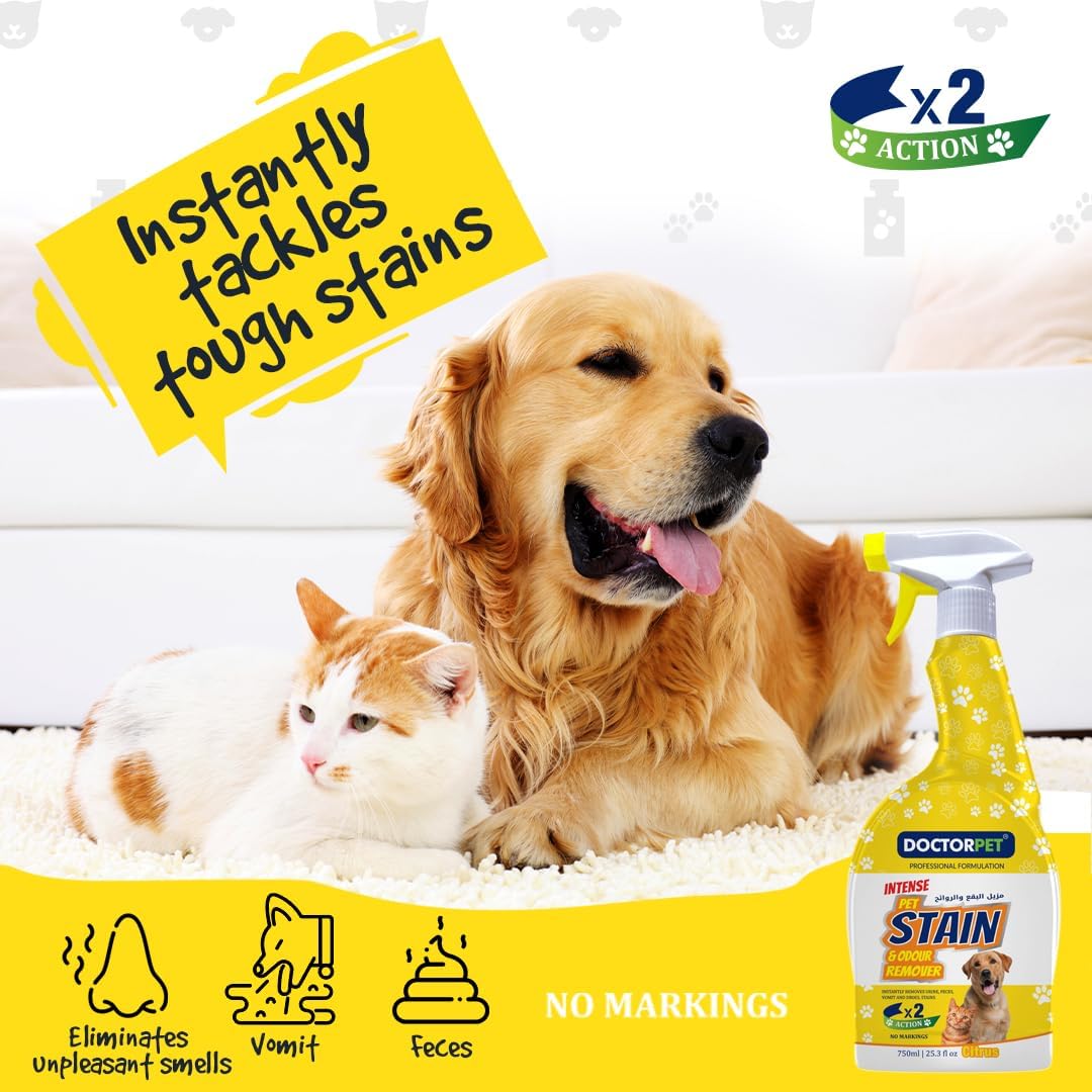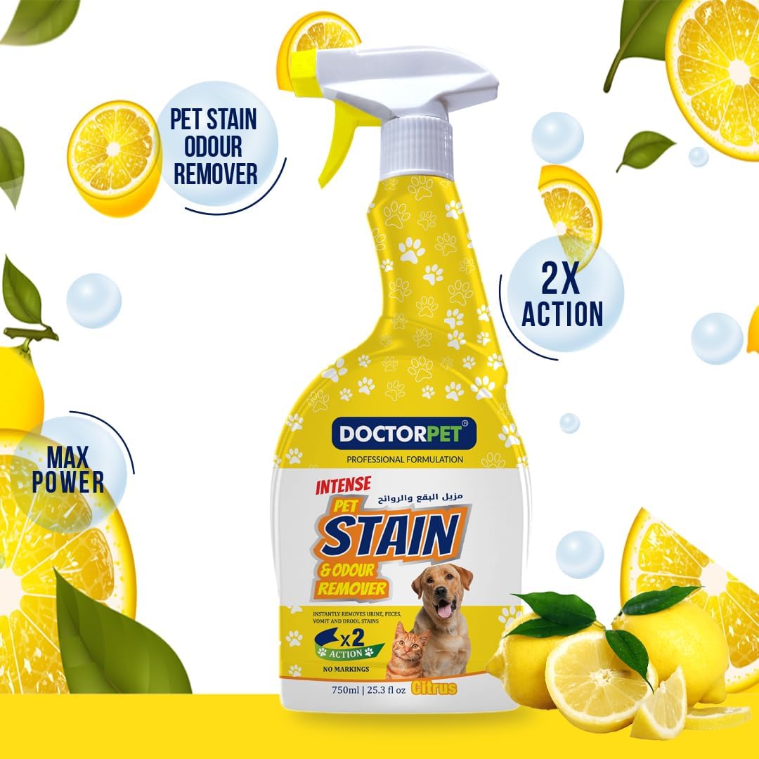 Perfect for pet owners seeking a safe, effective, and easy-to-use solution, this cleaner ensures that your cats and dogs’ living spaces remain comfortable and fresh. Maintain a clean home, protect your furniture, and keep your pets safe with Doctor Pet Max Power Pet Stain & Odor Remover for Cats & Dogs, Citrus Scent 750ml.