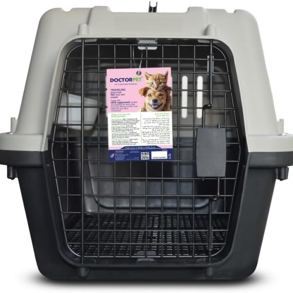 Doctor Pet Pet Carrier Crate 61x45x41.5 cm – IATA Approved Travel Crate – Safe & Comfortable Pet Transport for Cats & Small Dogs