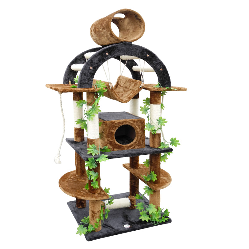 One of our most exciting cat trees, our 71” Forest Cat Tree comes complete with everything from sisal climbing ropes, a swinging hammock, a tunnel tube, a cozy condo and sisal-wrapped scratching posts.