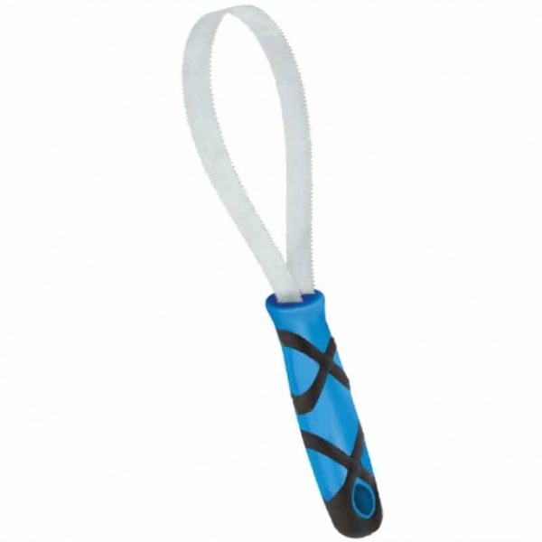 Made from stainless steel with a double-sided tooth blade and easy-grip handle. Can be used looped or straight. Ideal for the removal of dead and unwanted hair.