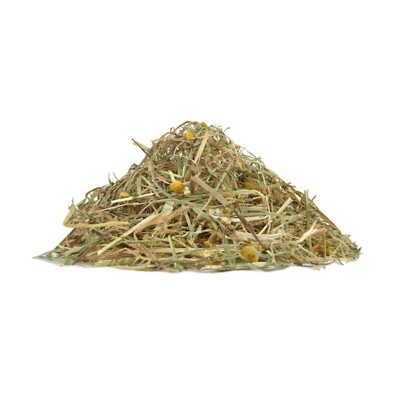 Little One Mountain Hay with Chamomile is a natural, aromatic food and bedding source for rabbits and rodents. This high-fiber hay is harvested from ecologically clean alpine meadows, ensuring top quality for your small pet’s daily diet. The addition of chamomile not only enhances taste but also promotes relaxation and supports digestion.