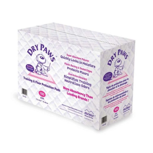 Dry Paws Training pads are constructed of a super absorbent polymer and quilted to quickly lock away moisture and bacteria keeping your pet healthy and floors clean. The Dry Paws Training pads are a great tool for house breaking a new puppy and designed to provide your pet with a place to eliminate during those times when you are not available to let them out. Dry Paws Training pads are not just for our new friends, they are also perfect alternative for our older pets that may have a hard time making it outside or are just unable to hold on long enough. Also a great alternative for pet parents that live in apartments or homes with limited outdoor areas.