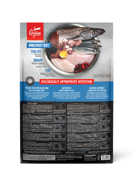 - Our authentic WholePrey diet features the succulent parts of the prey like poultry or fish, organs and bone to mimic what your dog’s ancestors consumed in the wild.
