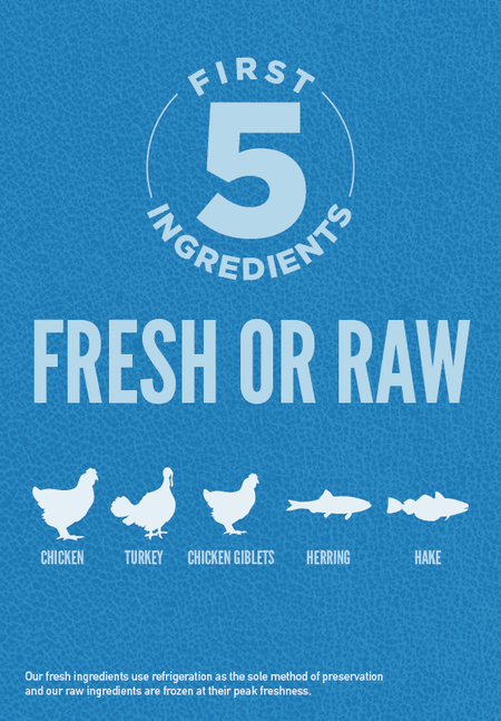 - The first 5 ingredients are fresh or raw2Â poultry and fish ingredients.
