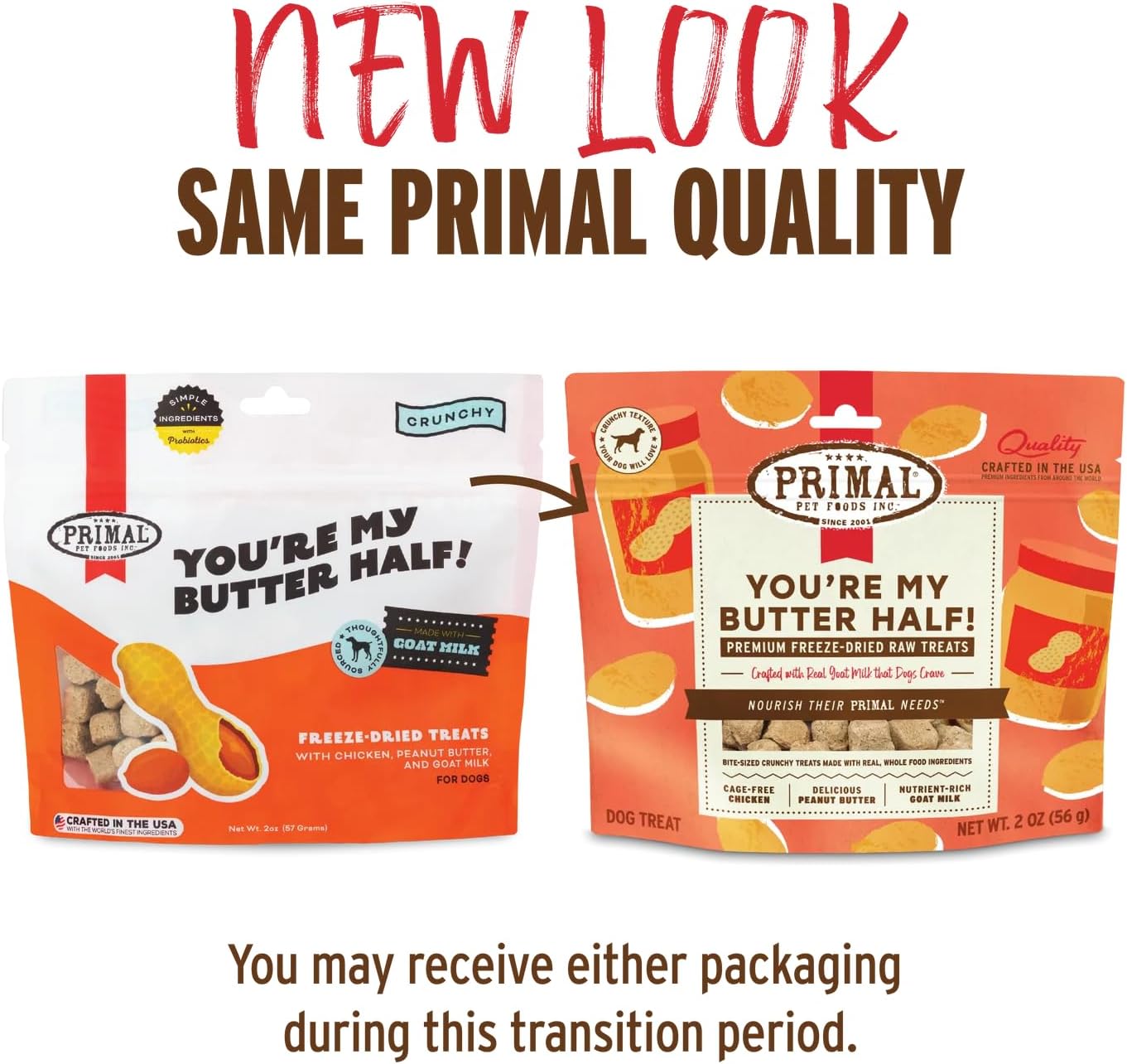 Delight your pup with a wholesome, flavorful treat — Primal Crunchy Freeze-Dried Dog Treats made with real chicken, peanut butter, and goat milk. These bite-sized treats are gently freeze-dried to preserve nutrients and flavor while offering a satisfying crunch.