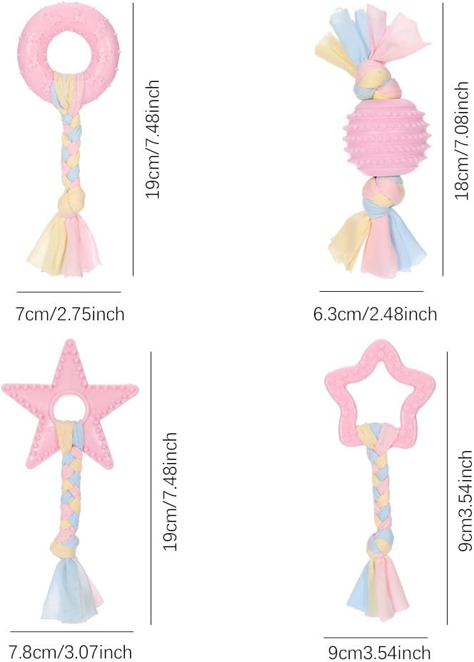 Each toy is crafted from safe, non-toxic TPR rubber and cotton rope. These durable materials ensure long-lasting use while remaining gentle on your puppy’s mouth. Unlike ordinary chew toys, these come in six unique shapes—bone, doughnut, flower, candy, ball, and star—which offer a variety of textures for more engaging play.