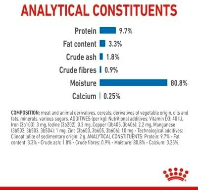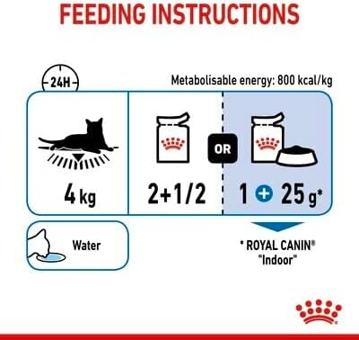 With moisture content around 81%, this broth-rich meal enhances hydration for urinary care. The soft texture and rich gravy improve intake even for picky cats. You can serve it alone or mix it with Royal Canin Indoor dry kibble for a balanced daily feeding.