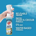 Packaged in an innovative refillable Flairosol spray bottle, it delivers an ultra-fine, continuous mist for even coverage—ideal for treating carpets, upholstery, bedding, hard floors, and more. Designed for pet parents who demand both performance and convenience, this spray is a must-have for managing accidents from dogs and cats.