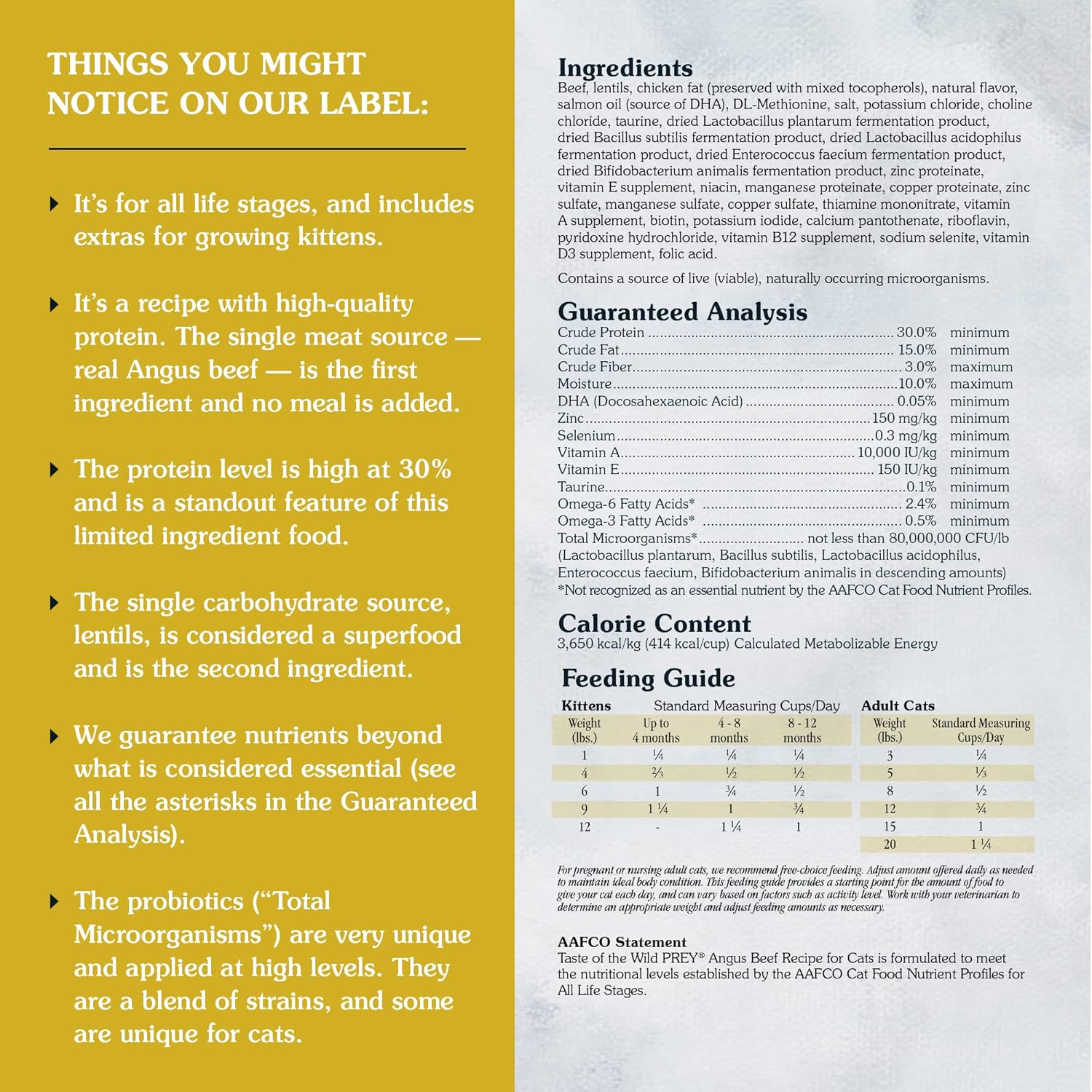 Choose Taste of the Wild Prey Dry Cat Food with Angus beef to nourish your cat naturally.
